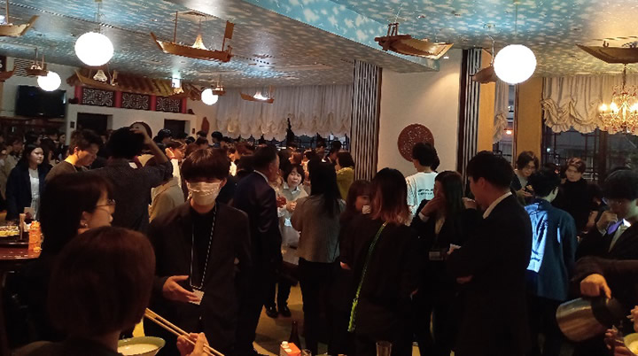 共に業界で働いていく同期との横の繋がりを持つ交流の場として懇親会を開催いたしました。参加社同士で名刺交換を交わすなど、積極的にコミュニケーションを図っていました。会の途中には、参加者を紹介するコーナーなども設けました。
